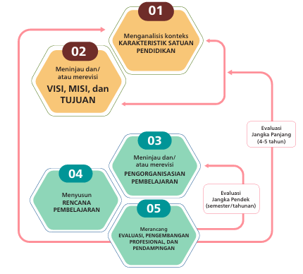 - Evaluasi lingkup kelas (langkah 3-5) dilakukannya per semester/tahunan sesuai dengan kebutuhan. Evaluasi jangka pendek dapat menggunakan data seperti observasi, diskusi dengan warga sekolah (seperti pendidik, kepala satuan pendidikan, murid), dan rapor pendidikan. Hasil evaluasi ini dapat membantu kepala satuan pendidikan dan pendidik untuk memperbaiki pengorganisasian pembelajaran dan rencana pembelajaran sehingga kualitas pembelajaran bisa meningkat.